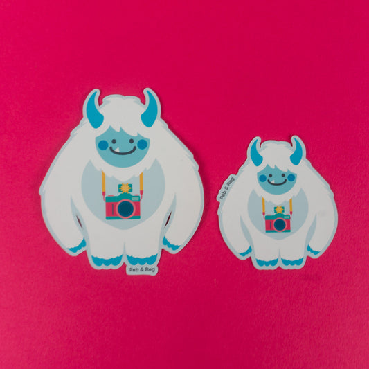 Yeti With Camera With Frog and Chick Diecut Sticker
